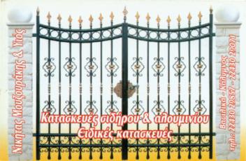 καγκέλων, ταρατσών, περιφράξεων, σιδηροκατασκευές για πυλωτές,